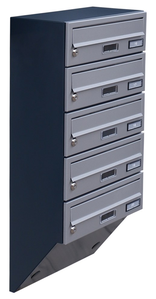 Skośny front ułatwia wrzucanie korespondencji i podkreśla minimalistyczny charakter konstrukcji.